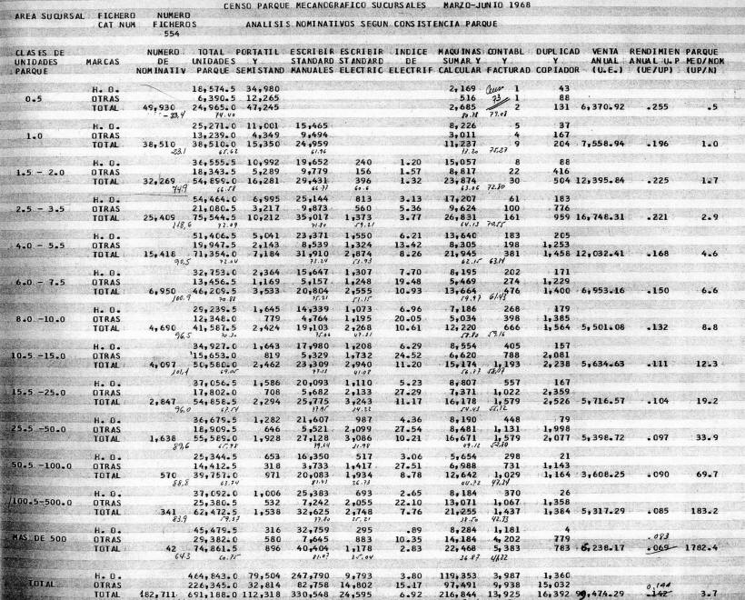 De todas maneras, ahora queda por presentar la parte más amena de la investigación. La que puede ser percibida erróneamente como el objetivo principal de la misma: la descripción cuantitativa y cualitativa del parque de determinadas máquinas de oficina que utilizaban los operadores económicos de los territorios investigados.
