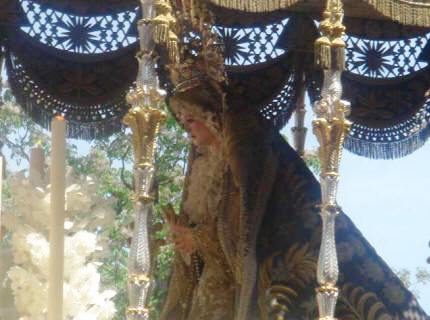 Muy emocionante es ver la procesión de La Macarena en las estrechas calles adyacentes al Palacio de Dueñas.